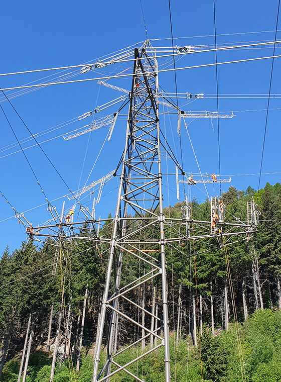 Sämtliche Isolatoren und Armaturen für Erd- und Leiterseile wurden ersetzt. In einzelnen Teilabschnitten wurden die Erdseile komplett neu eingezogen.