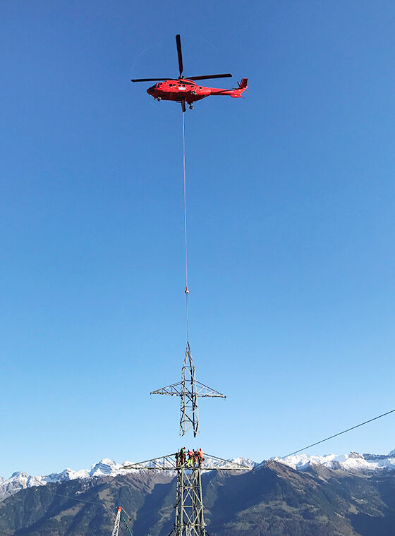 Die Arbeiten fanden im Hangrutschgebiet statt. Alle Demontage und Montagearbeiten der Masten fanden mittels Helikopter statt.